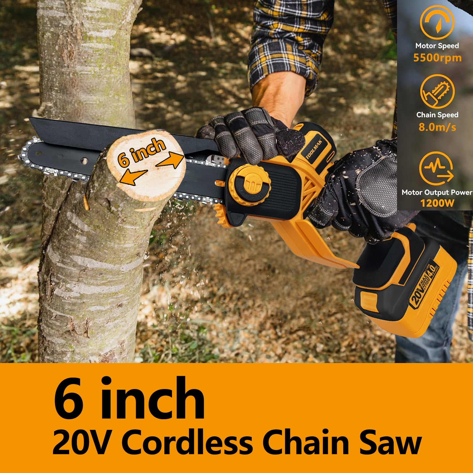 La motosega a batteria TOOLMAK è pensata per rendere la potatura e il taglio del legno semplici ed efficienti.